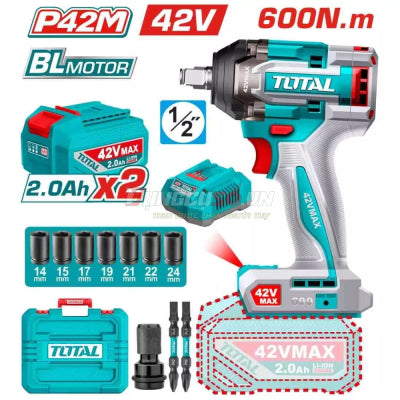 TOTALLibérez une puissance sans fil exceptionnelle pour vos travaux mécaniques lourds avec la Total Clé à Chocs Sans Fil 42V 600 Nm TIWLI42602. Conçue ...